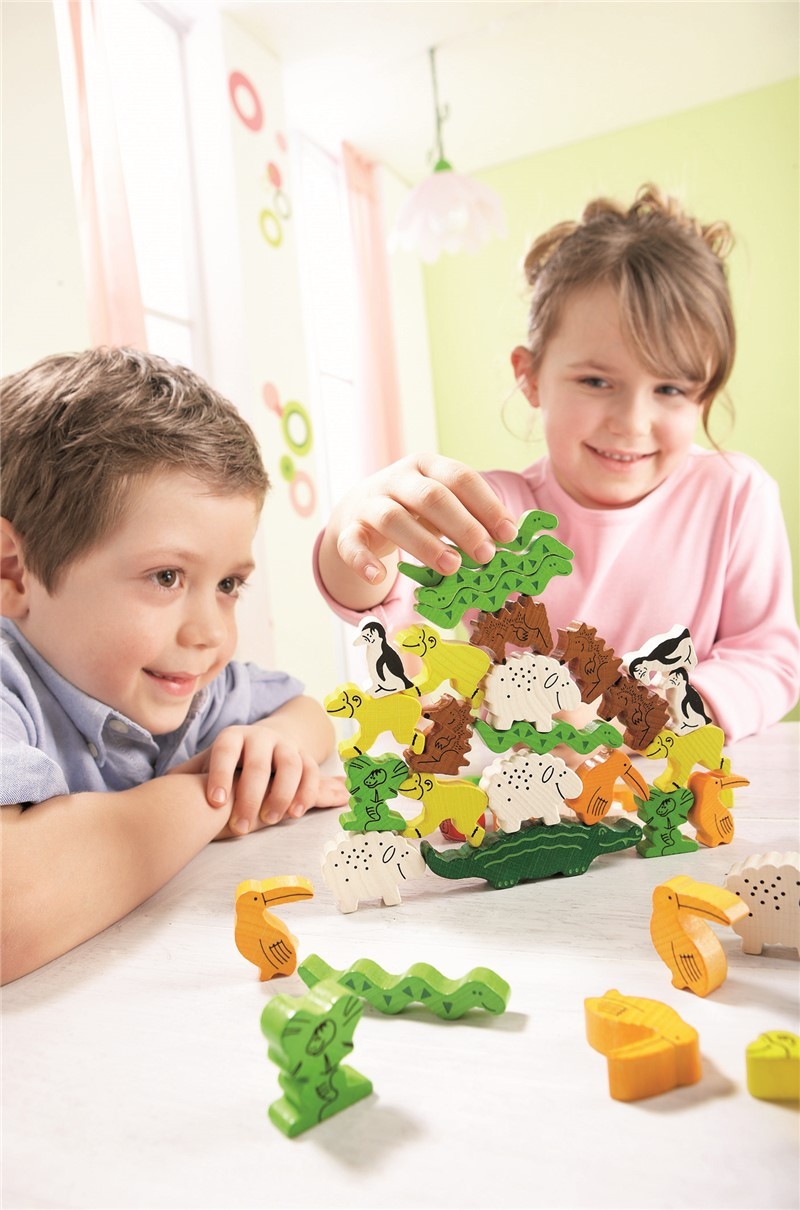 ¡Bienvenidos al desafío más salvaje! En Animal sobre Animal, los jugadores apilan criaturas sin que se derrumbe la torre. ¡Un pulso firme y nervios de acero te harán triunfar! Lanza el dado, coloca sabiamente y supera a tus rivales en esta loca carrera de equilibrio. ¡Que empiece la escalada animal!