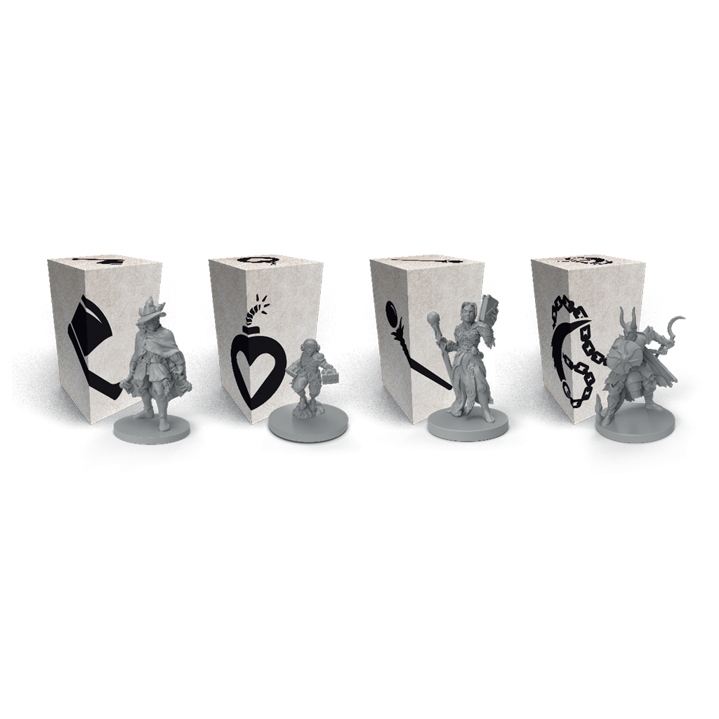 Contenido: 2 libros con 25 escenarios, reglamento y guía de aprendizaje, 4 personajes con miniaturas y mazos, 16 monstruos con figuras y cartas, mapa de la ciudad con pegatinas, más de 20 cartas de evento, más de 100 fichas y contenido secreto que se revelará con cada partida.