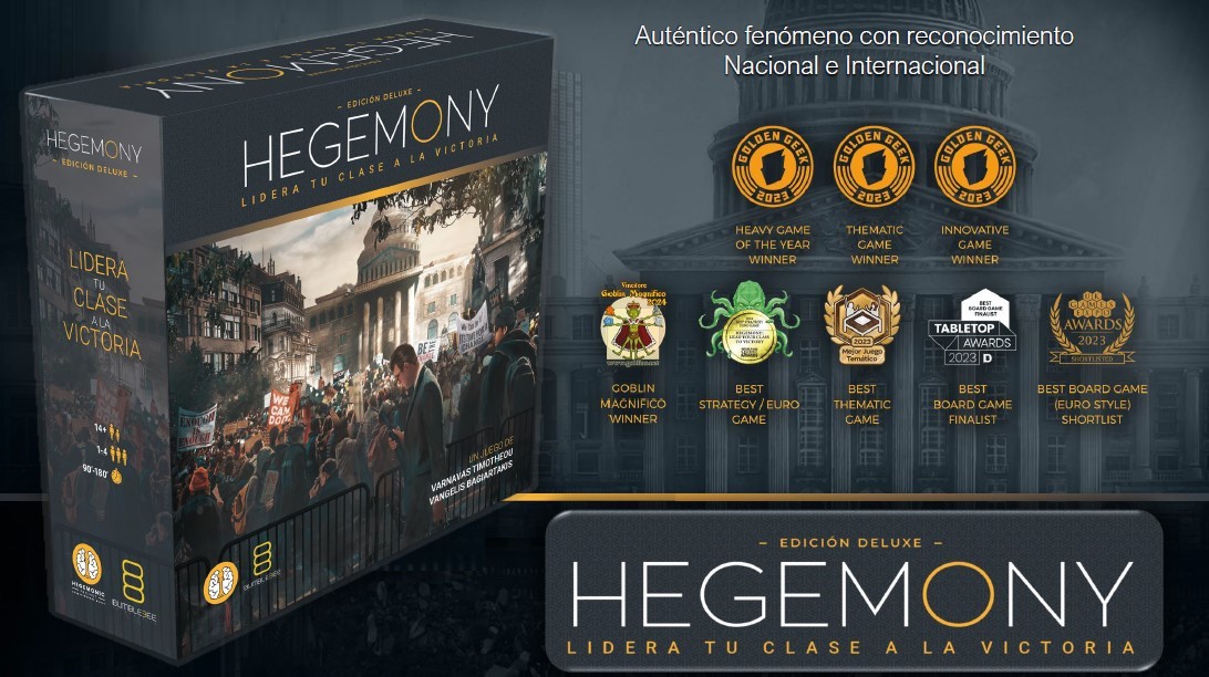 En Hegemony: El Juego, el caos se ha apoderado de la nación: la economía está en ruinas, el pueblo está descontento y las tensiones políticas hierven en cada rincón. Como líder de una de las cuatro clases socioeconómicas (Obrera, Media, Capitalista o el Estado), tu misión es imponer tu visión del futuro, construir alianzas estratégicas o maniobrar en la sombra para alcanzar la victoria. ¿Abogarás por la justicia social o acumularás riquezas sin piedad? ¿Gobernarás con diplomacia o manipularás las leyes en tu favor? Con mecánicas de gestión de recursos, distribución de cartas y votación, cada decisión marcará el destino de la nación. ¡Forja la historia, impón tu hegemonía y demuestra quién manda en el tablero del poder!