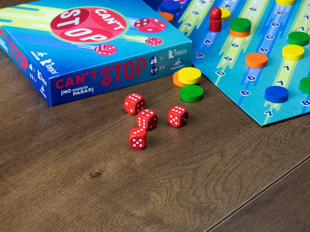 Can't Stop es un trepidante juego de dados donde la suerte y la estrategia van de la mano. ¿Avanzas con cautela o arriesgas todo en un último lanzamiento? Sólo los más valientes dominarán la probabilidad y se alzarán con la victoria. ¡Venga, tira otra vez… si te atreves!