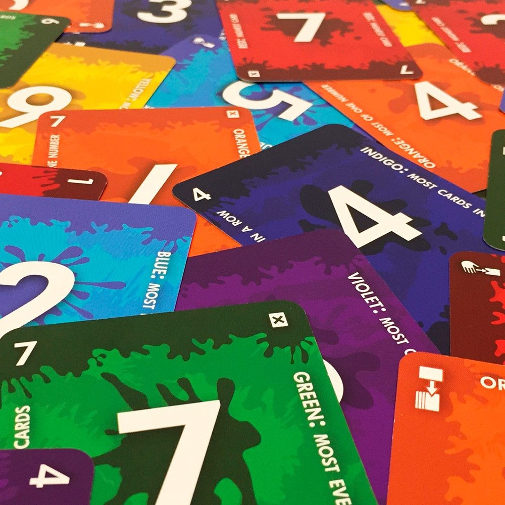Contenido: 49 cartas numeradas del 1 al 7 en 7 colores, reglas de juego en varios niveles de dificultad y una intensa dosis de decisiones tácticas.