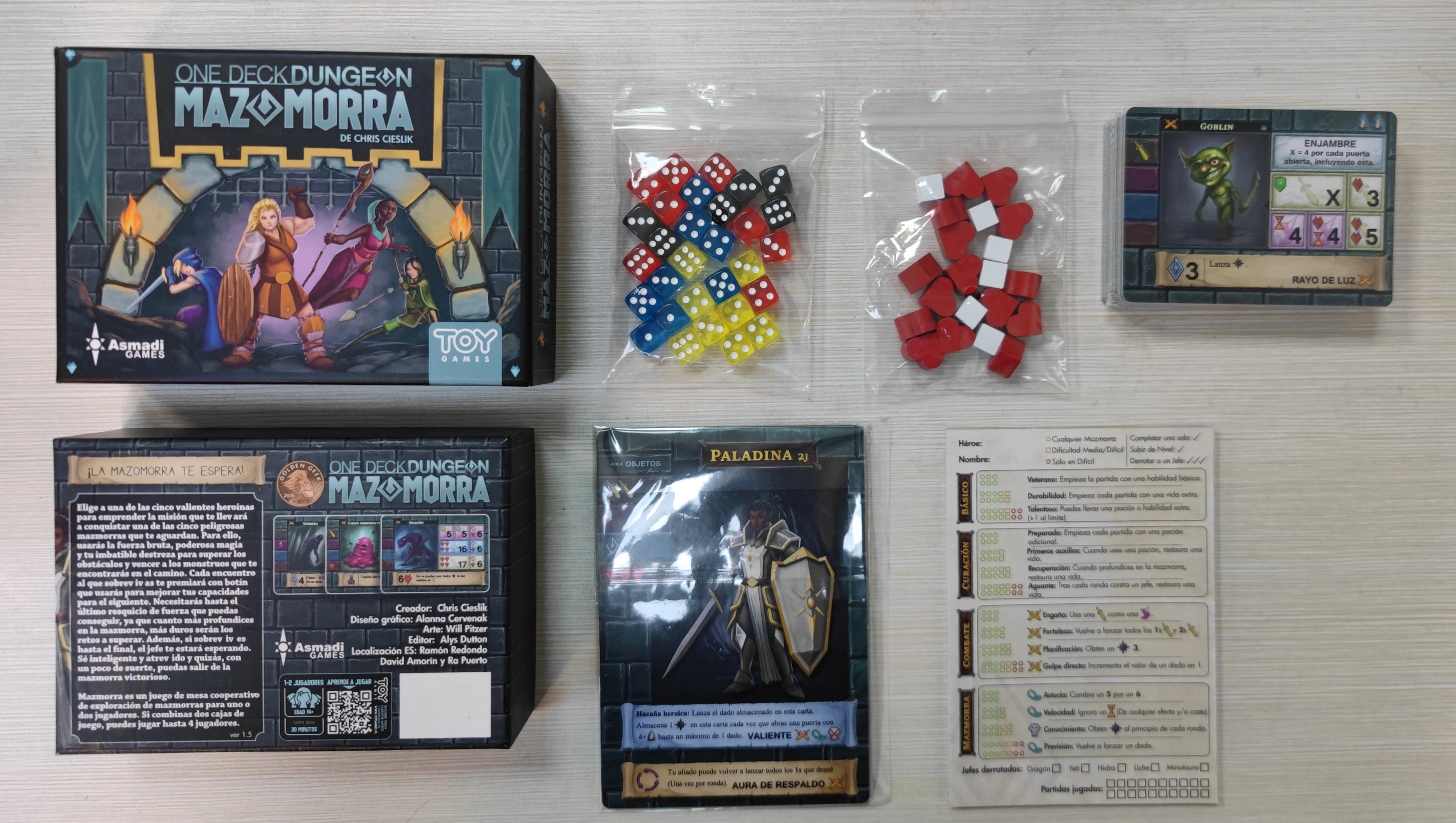 ¡Ah, valiente aventurero! Entra en MAZOMORRA (One Deck Dungeon), un desafío donde solo los más astutos y audaces forjarán su leyenda. Un juego de cartas con alma de roguelike, donde cada incursión en las profundidades es distinta y despiadada. Cada carta es tanto enemigo como recompensa: tras vencer a bestias y trampas, podrás reclamar su poder como experiencia, artefacto o habilidad. Pero cuidado, cuanto más tardes en avanzar, más oscura y letal se vuelve la mazmorra. ¡Y al final te espera un jefe digno de las más épicas gestas! Diseñado para 1-2 héroes, aunque con varios sets, más aventureros pueden unirse a la expedición. ¿Sobrevivirás para contar tu historia o serás otro eco en las catacumbas?