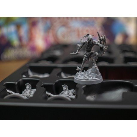 Componentes: 220 cartas (58 x 88 mm), 55 cartas (44 x 88 mm), 12 dados personalizados, 93 fichas, 11 piezas de isla, 83 indicadores, 4 hojas de escenario, 4 tableros de personaje, 20 peones, 1 hoja de adhesivos, 18 miniaturas, 1 campaña de introducción, 1 reglamento y 1 tablero de juego.